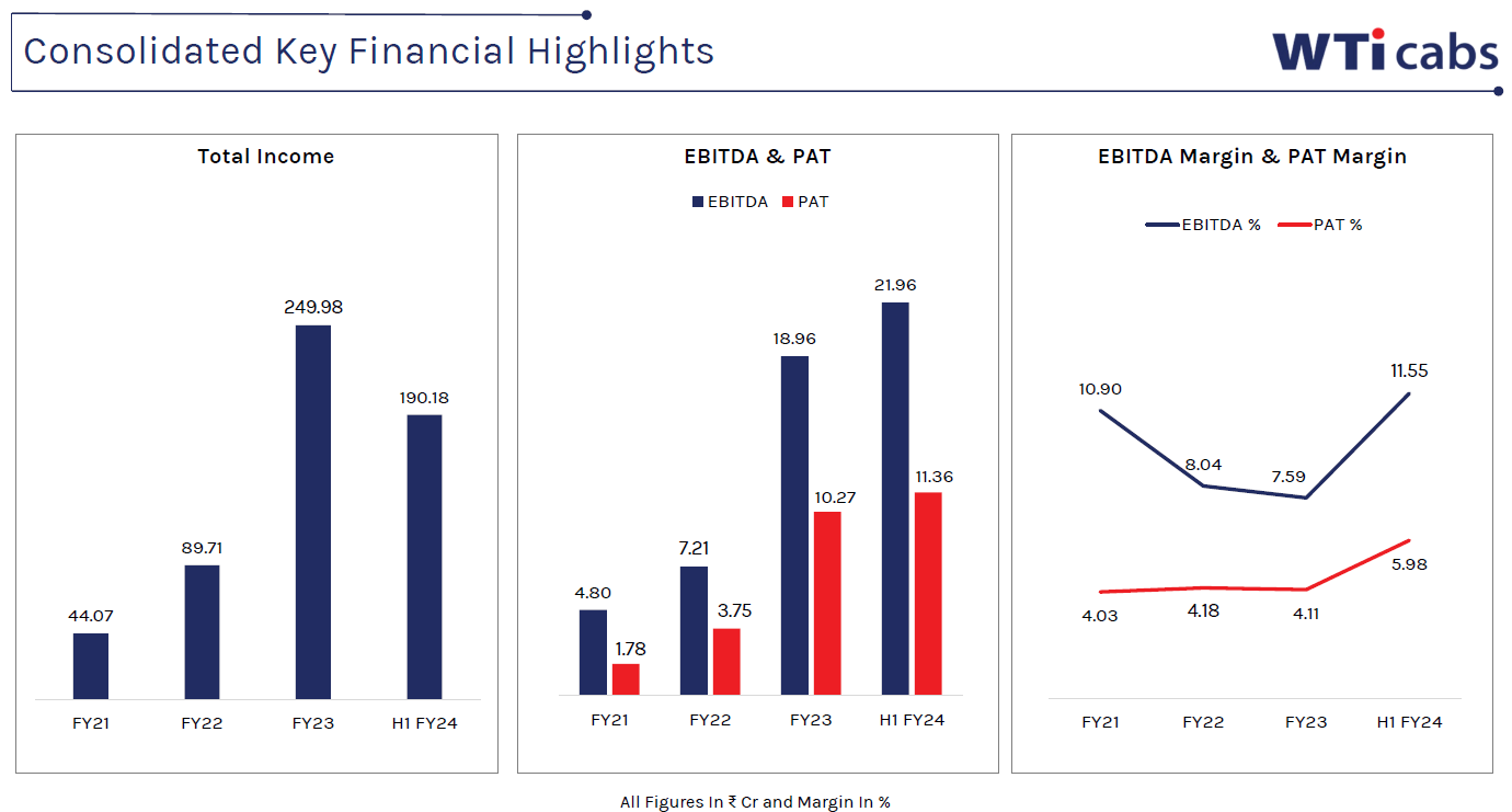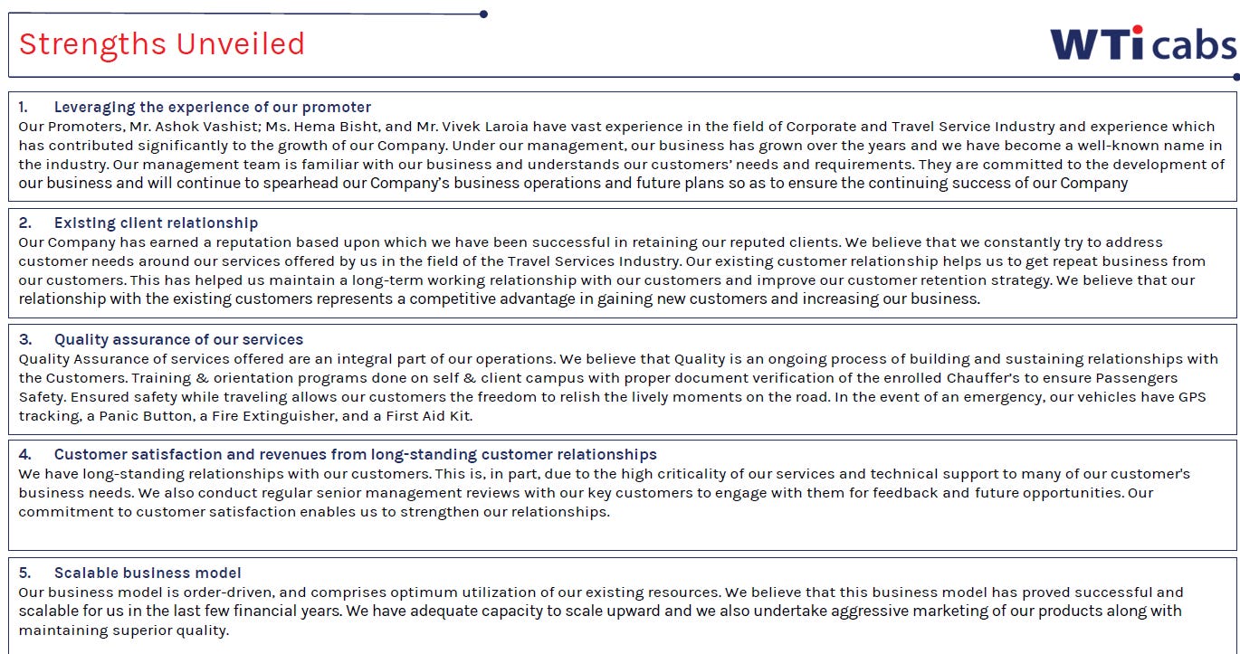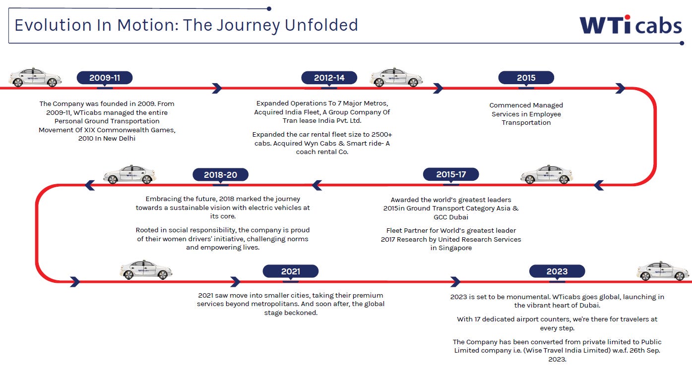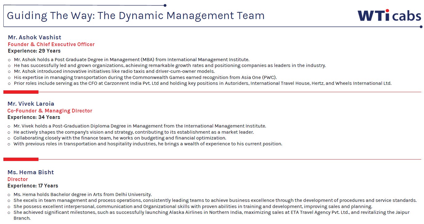 It also showcases the skin in the game of the promoters. WTiCabs made acquisitions in 2012 to expand fleet to 2500+, one of the first to pioneer the concept of Managed services provider for corporates in 2015, expanded to Tier 2 , Tier 3 cities in 2021 and in 2023 going international.