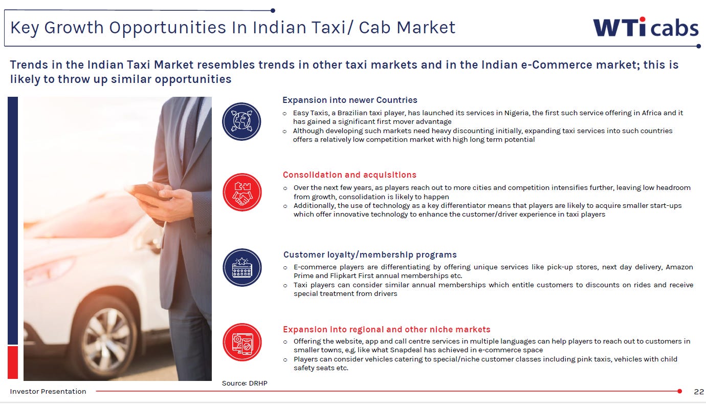 WTiCabs - It has the edge of the expertise of its promoters, a huge opportunity size for growth, and untapped market in Tier2 cities and International markets . Above all it is providing a good value at these valuations.